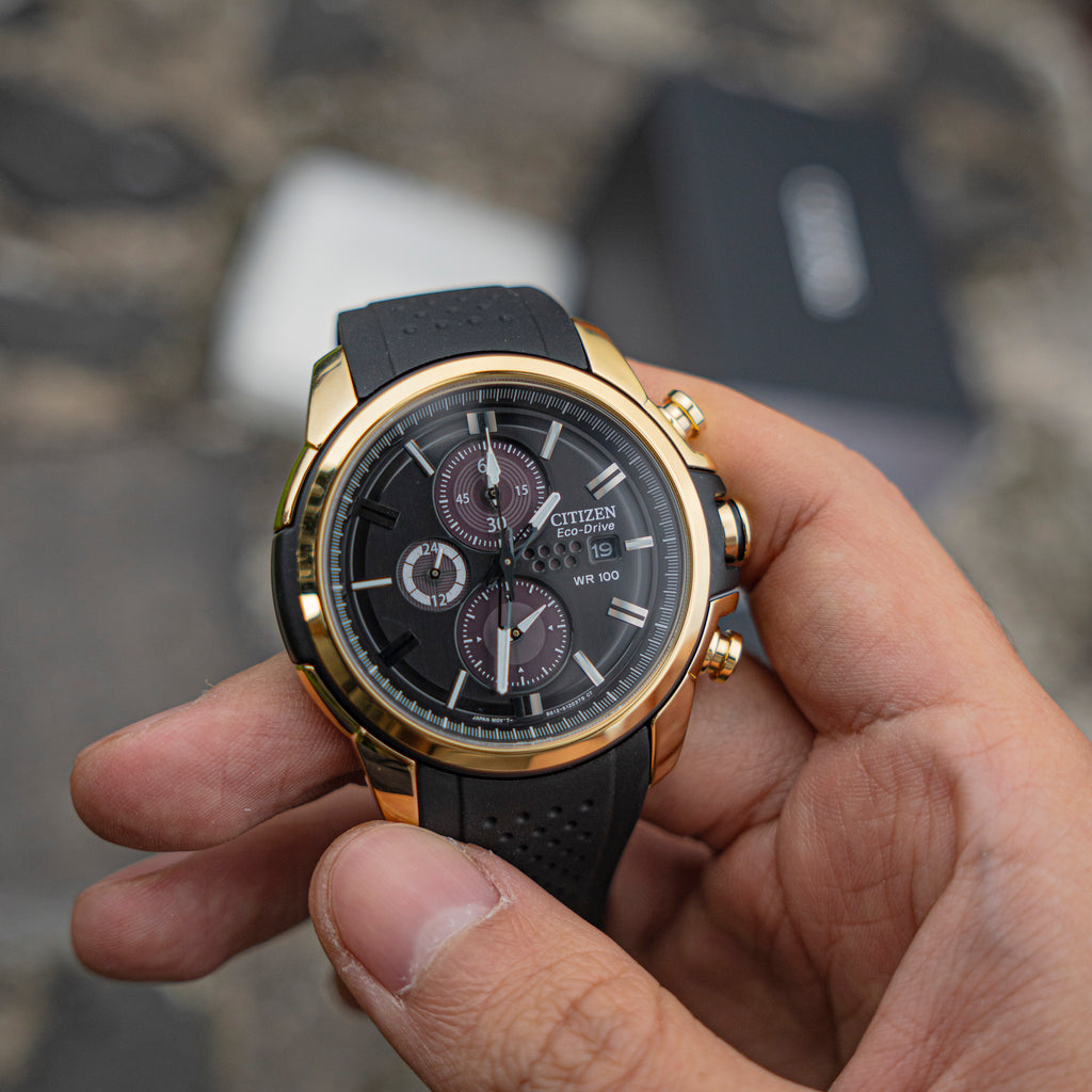 El Citizen CA0422-01E es un reloj de carácter deportivo con presencia. Su caja grande y esfera negra con detalles en dorado le dan un aire agresivo pero elegante. La funcionalidad del cronógrafo y el bisel taquímetro aportan utilidad para medir intervalos y velocidad, mientras que la tecnología Eco-Drive asegura que no tendrás que preocuparte por baterías. Con 100 m de resistencia al agua, está bien equipado para natación superficial. Se ve excelente con ropa deportiva, atuendos urbanos atrevidos y prendas de inspiración técnica. Un detalle interesante es que es uno de los modelos “sport casual” de Citizen que destaca por su combinación de tamaño y funciones dentro de la línea Eco-Drive.