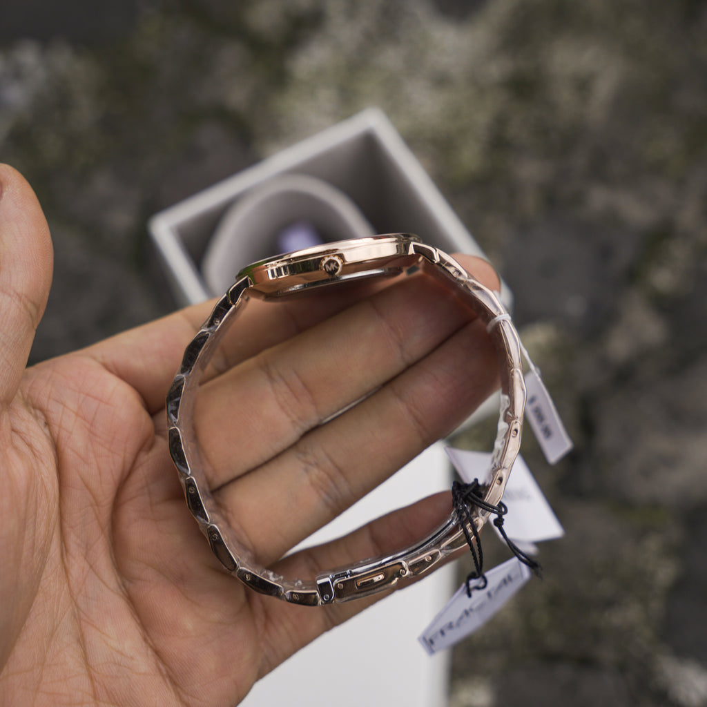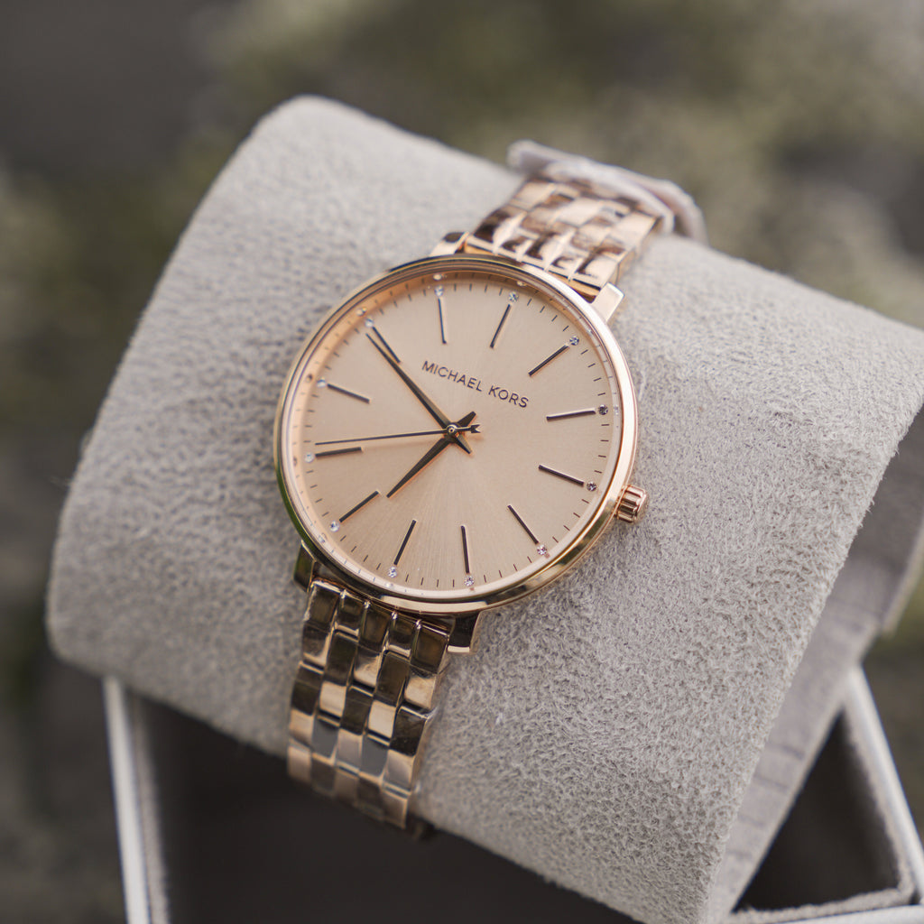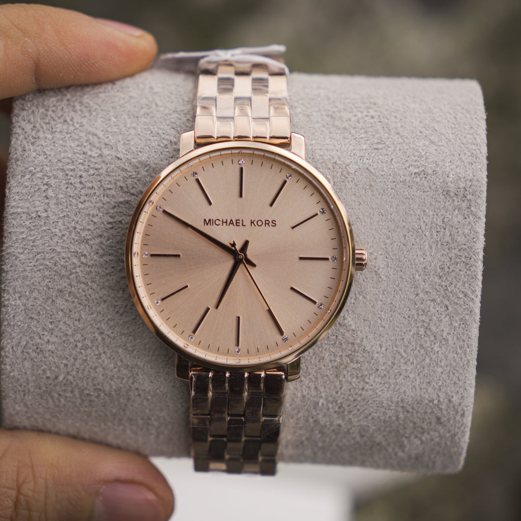 El Michael Kors Pyper MK3897 es un reloj femenino elegante y contemporáneo que equilibra estilo y simplicidad. Su estética minimalista, con esfera limpia y acabado en oro rosa, lo hace ideal como accesorio de diario o de vestir discreto. Gracias a su diseño refinado, luce muy bien tanto con prendas formales como con atuendos casuales elegantes.
